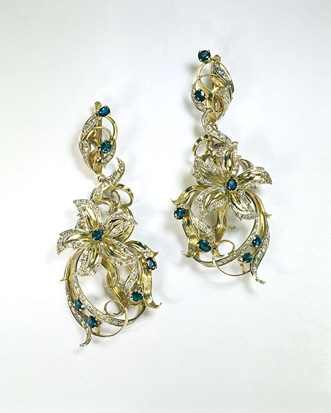 Золото (585), серебро, бриллианты (6,91 ct), сапфиры, вес - 41,21 г.