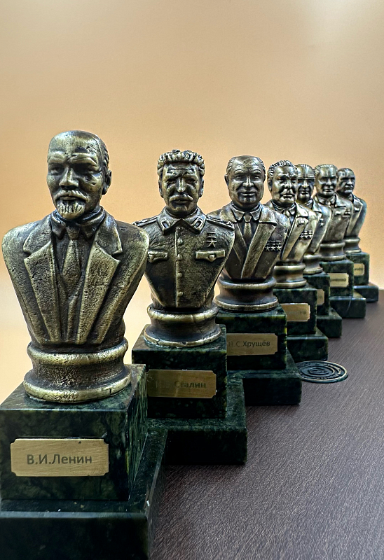 Коллекция «Правители СССР», представленная в виде миниатюрных бронзовых бюстов, является выдающимся образцом художественного и исторического осмысления эпохи советского руководства. В составе коллекции, выполненной в технике ювелирного литья, представлены семь скульптурных портретов: В.И. Ленина, И.В. Сталина, Н.С. Хрущева, Л.И. Брежнева, К.У. Черненко, Ю.В. Андропова и М.С. Горбачева.