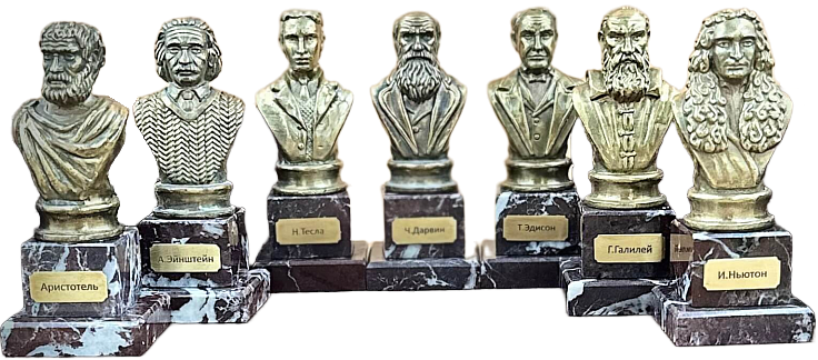 Коллекция «Ученые мира», представляющая собой тщательно отобранную серию бронзовых бюстов, включает изображения семи выдающихся представителей научной мысли, чьи открытия и достижения оказали глубокое и многостороннее влияние на развитие мировой науки. В данной коллекции представлены выдающиеся деятели, такие как Аристотель, Галилео Галилей, Исаак Ньютон, Чарльз Дарвин, Никола Тесла, Томас Эдисон и Альберт Эйнштейн. Эти миниатюрные скульптуры, выполненные с использованием передовых технологий литья и обработки металла, демонстрируют высочайшую степень ювелирной точности и детализации, что позволяет передать не только внешние черты, но и внутренний облик этих великих умов.