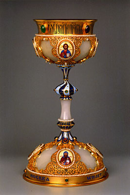 Золото, живопись по эмали, сапфиры, изумруды, гранаты.